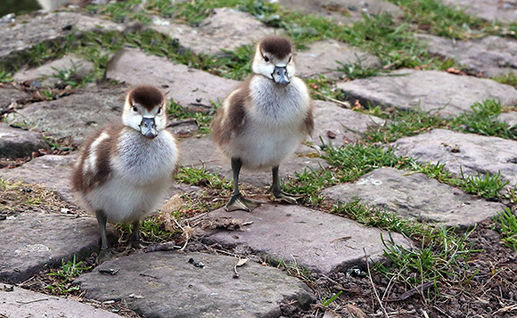 Die Nilgans kommt ursprünglich aus Afrika und hat jetzt auch in Europa ihre Heimat gefunden. Ihre Küken sehen den Küken der Stockente ähnlich, sind jedoch etwas größer und kräftiger gebaut. Beide Eltern kümmern sich um die Aufzucht. Nach etwa 10 Wochen erreichen die Küken ihre vollständige Selbstständigkeit.