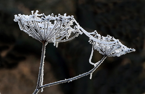 Der Wiesenkerbel zählt zu der Familie der Doldenblütler und erreicht eine Wuchshöhe von 60 bis 150 cm. In Mitteleuropa kommt er häufig vor. Er wächst an sonnigen bis halbschattigen Standorten. Das frostige Motiv war in Freiburg zu sehen.