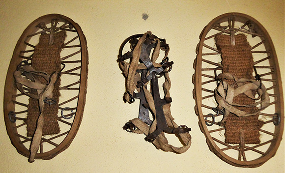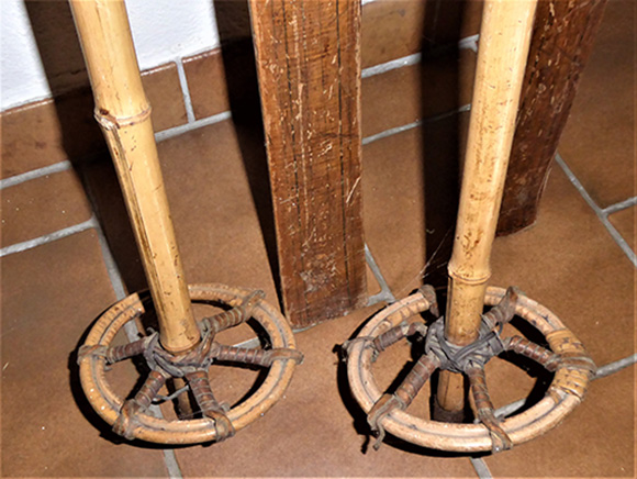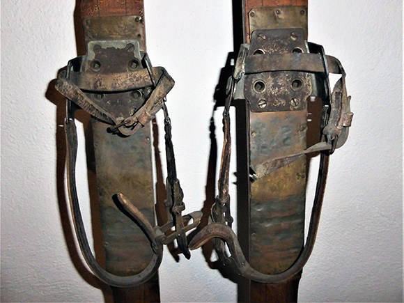 Alice Kneusslin von Schopfheim zeigte mir in ihrem Haus verschiedene Schneeschuhe, Steigeisen, und ein Paar alte 2,50 m lange Holzski mit Stöcken. Die Schneeschuhe kaufte ihr Schwiegervater vor etwa 100 Jahren bei der Firma Leonhard Kost & Cie in Basel.