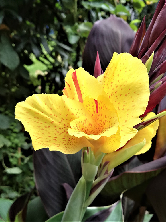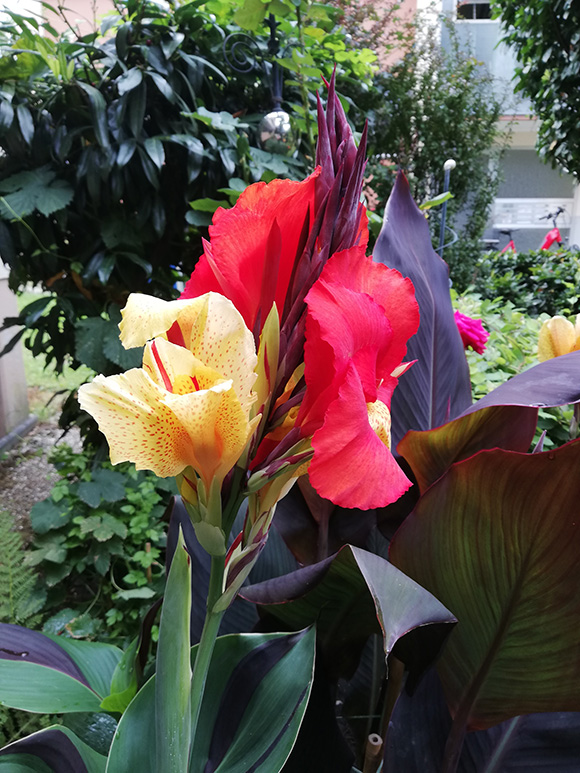 Die Canna (indisches Blumenrohr) ist eine imposante und farbenprächtige Pflanze, die einen Hauch karibischen Flair verleiht. Besonders schöne Exemplare, die bis zu 2 m in die Höhe ragen, sind im Garten meiner Nachbarin Karin Greiner zu sehen. Hier fühlen sie sich wohl, aber es ist auch eine gute Pflege vonnöten, wie wir sehen werden.